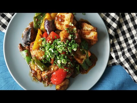 揚げ餅が入ったボリューミー麻婆!野菜もたっぷり♪ ■材料 ・餅 3個 ・片栗粉 適量 ・油 適量 ・パプリカ(赤・黄)各1/4個 ・ピーマン 2個 ・ナス 1本 ・麻婆豆腐の素 1袋 ・万能ねぎ 3...